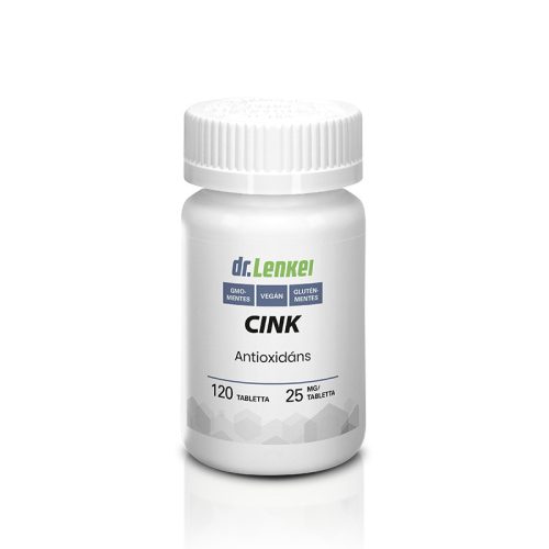 Dr. Lenkei cink tabletta, étrend-kiegészítő, 120 dbGMO-MENTES. TEJMENTES. GLUTÉNMENTES. SZÓJAMENTESA cink nélkülözhetetlen nyomelem. Csak nagyon kis mennyiségben van jelen a szervezetben. A cink az enzimeken keresztül minimum 200-féle fontos életfolyamatra van hatással, de a szervezet csak külső forrásból tud hozzájutni, így tanácsos táplálékkal vagy táplálékkiegészítő formájában bevinni.Javasolt napi adag: 1 tabletta.